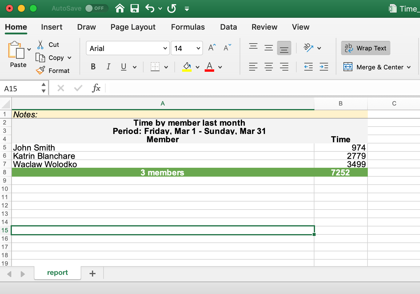Let’s take a plain report with time by a member as an example of changes we have made.