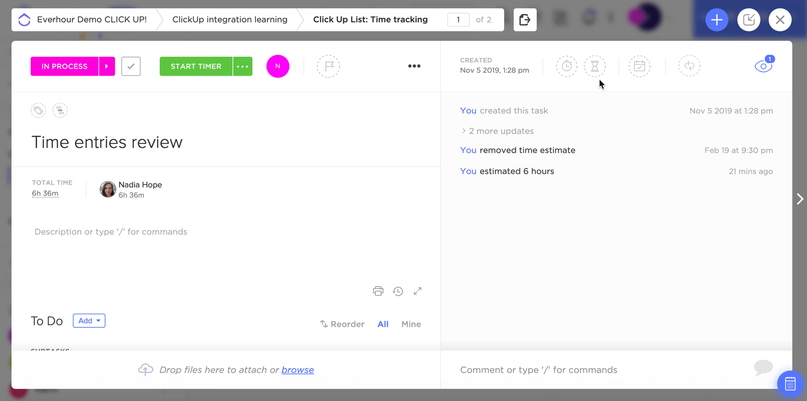 - If your ClickUp and Everhour overall estimates were different, the Everhour estimate will be updated with the ClickUp one.