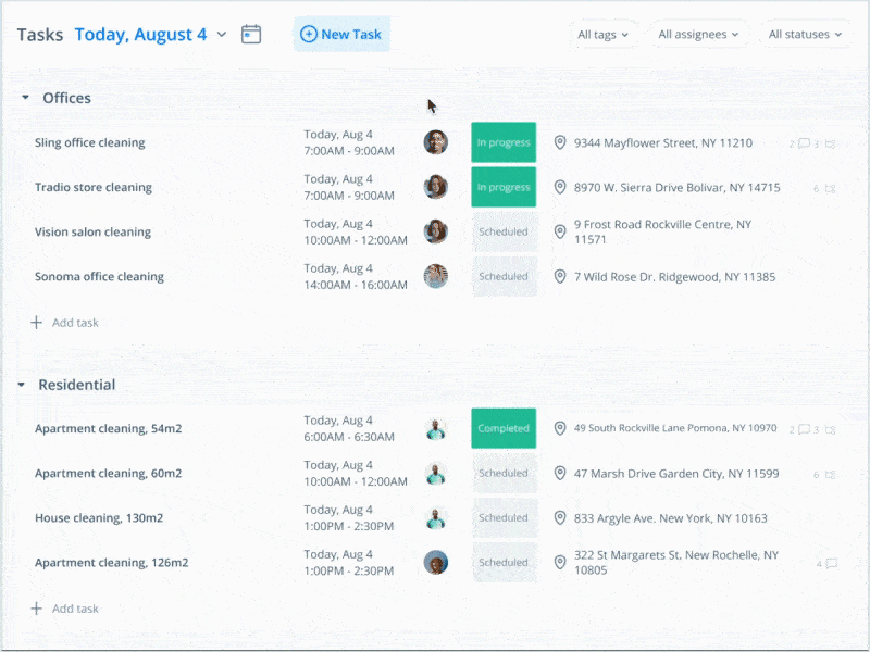 Inch is a workplace management tool with time clock features. Team members can log in and out of their shifts from their phones or from a designated terminal in the workplace or a vehicle. On-site and remote team members can also work from shared task lists, receive reminder notifications, and communicate with managers—all in one place.