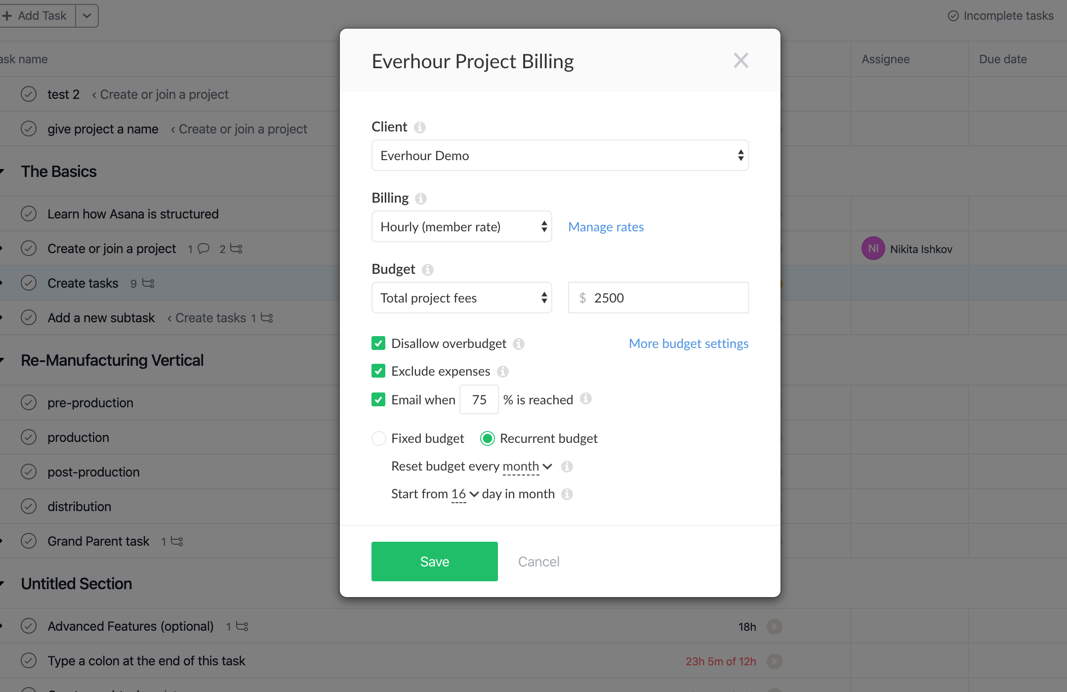 The feature is available in your Everhour account, it will also appear working in Asana through extension when a new version 1.6.65 is out (ETA next week).