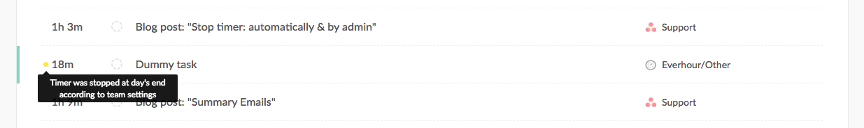 Gone are the days when you left the office but forgot to stop the timer! Starting today you can set up the rule that stops your Everhour timer automatically. Moreover, Admins can now stop it on behalf of other members too.