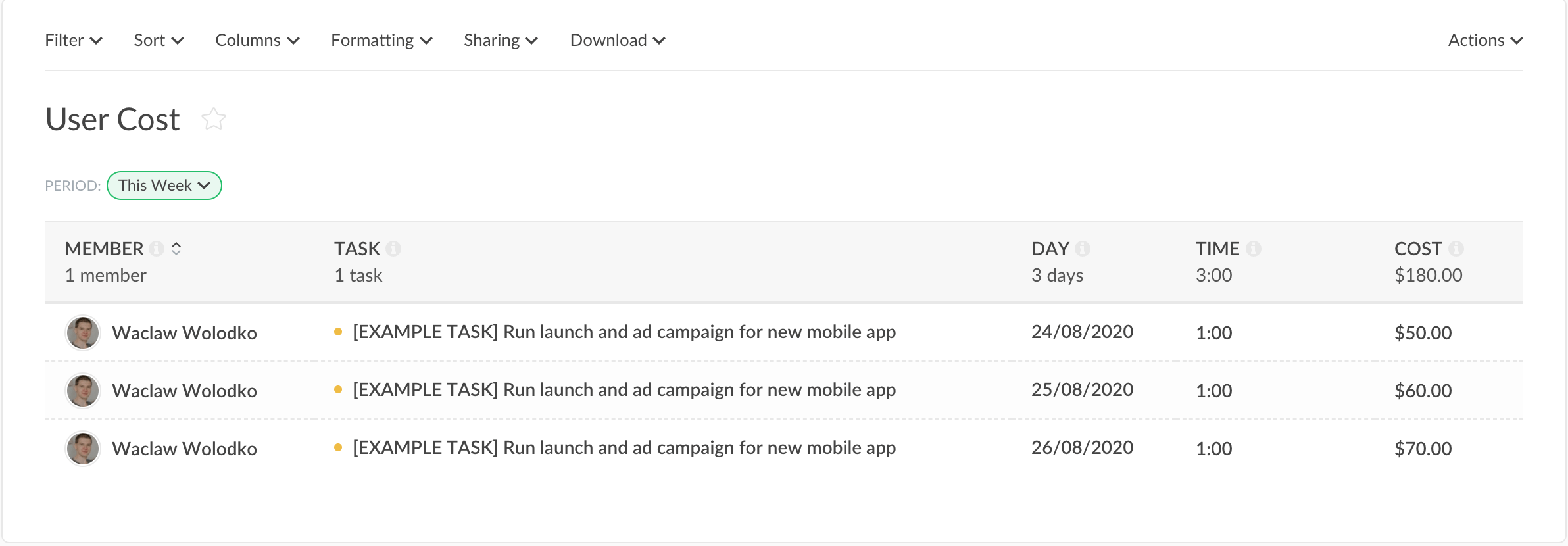 Firstly, go to your Team page and open ‘Members’, where you need to click on the user cost. There is an option to change the cost from X day now, thus keeping all historical results. The bottom of the box writes when the user cost was changed and applied the last time.