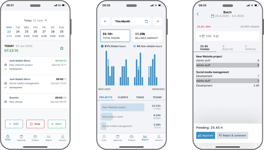 • What it does: Allows managers to oversee time entries and approve reports.