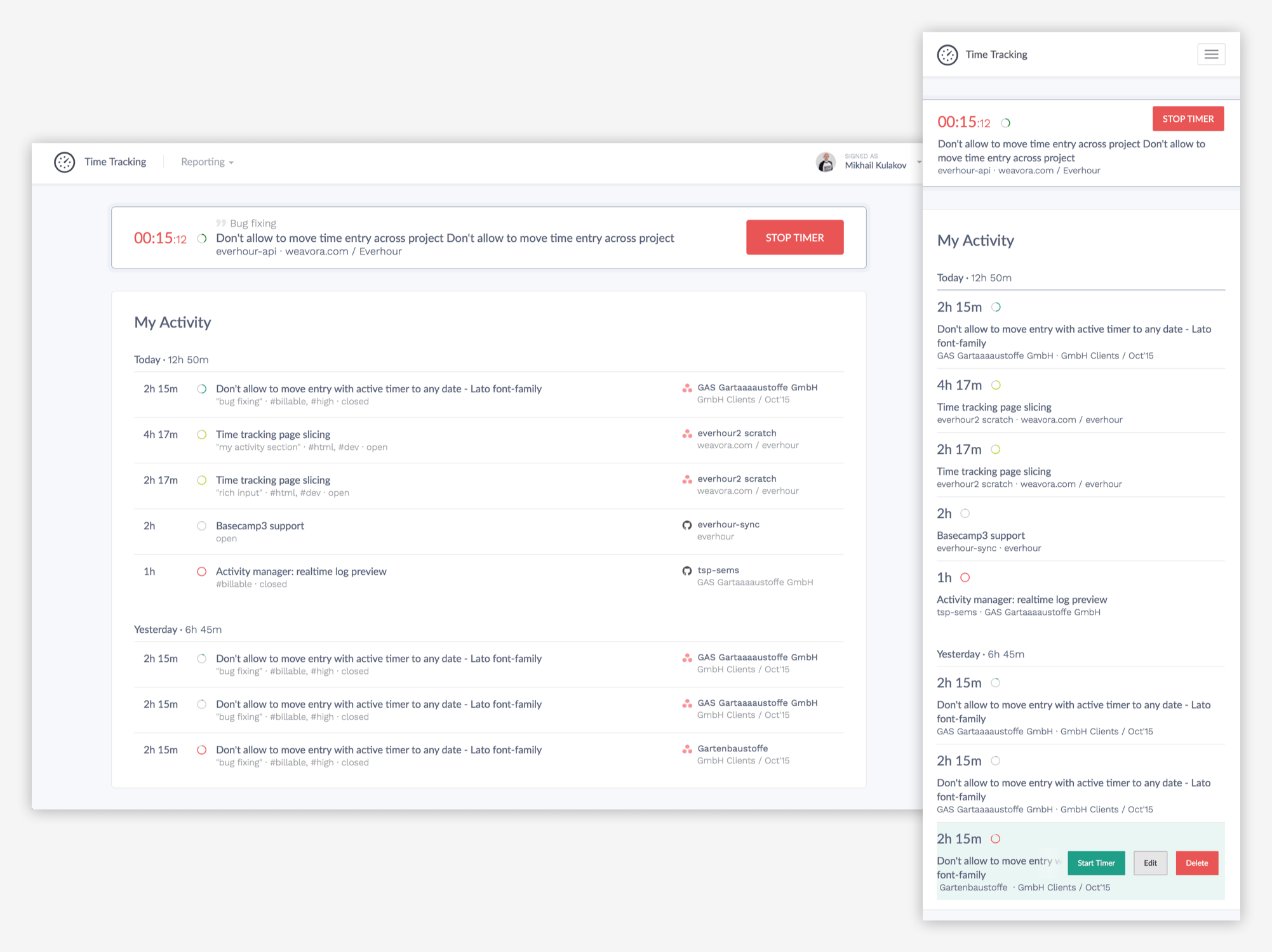 In addition to the layout adaptation, we have already completed API for the time tracking page, profile, onboarding, obtaining projects, and time.